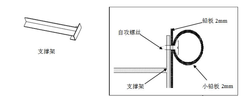 2.在土建墻上鉆Φ10膨脹螺絲,把鉛板貼在土建墻用M8膨脹螺絲鎖緊,膨脹螺絲頭用小鉛板包裹住,鉛板與鉛板相搭接,搭接處有M8膨脹鎖住,鉛板高度為2700mm,鉛板與地面的縫隙用硫酸鋇砂等倒實密封。注:做完以上步驟,防輻射鉛板墻施工安裝已完成。